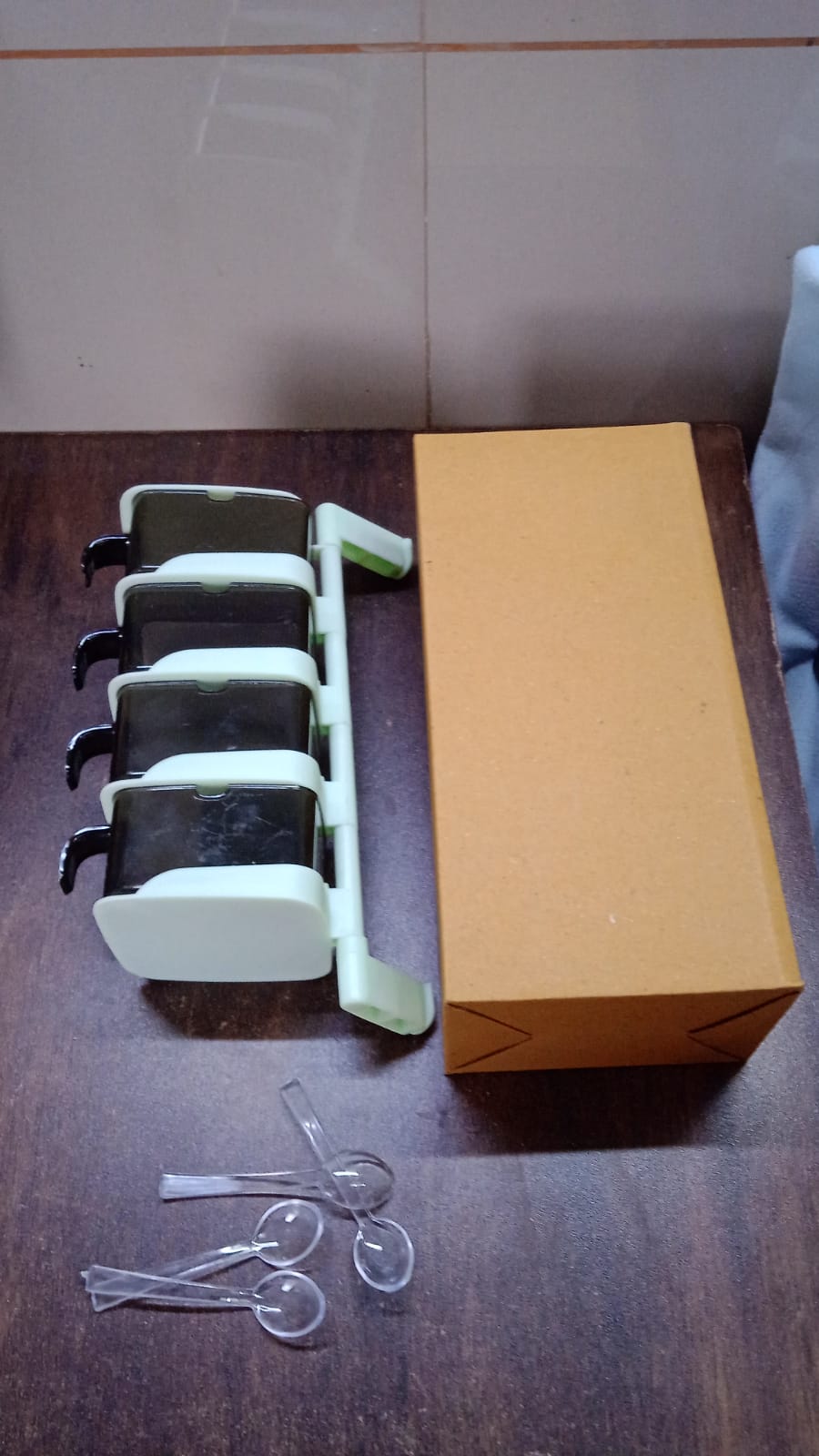 Rotating Spice Jars Vertical Rotatable Seasoning Box 4 Section / Tier With 4 Spoon (1 Set)