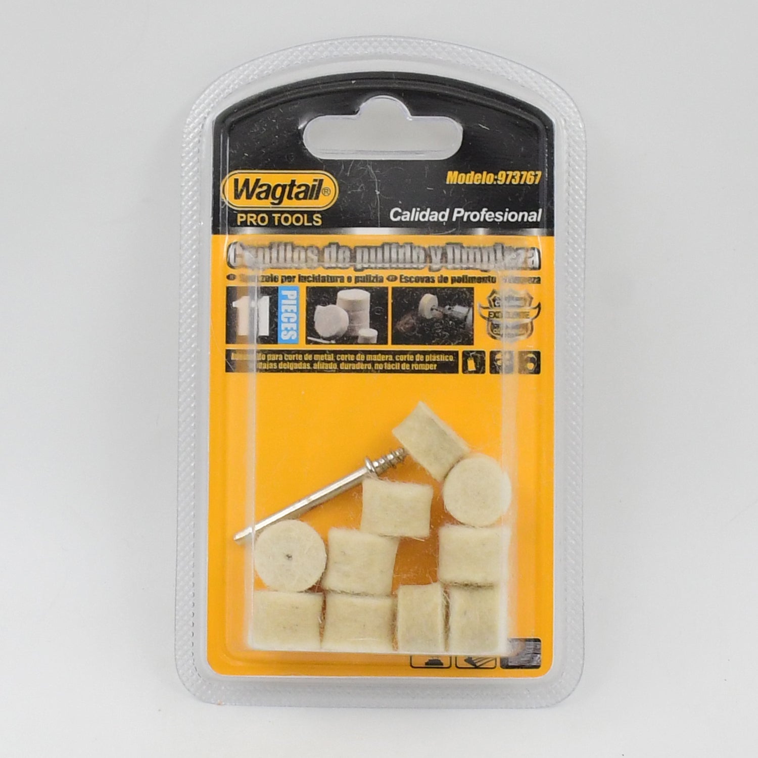 - Wool Felt Mounted Mandrel Set : felt polishing pad in different shape and size, large cylinder shaped, small cylinder shaped, bullets shaped, metal shank.