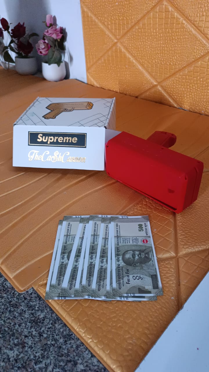 - Party Movie Prop Money Gun :-The handheld spray cash gun is a very funny toy for game, party, birthdays, weddings, team builders or NYE. This fashion paper playing spray money toy gun is a good choice for a gift for boys girls and friends. Fun party rapid money raining machine toy gun will keep you entertained throughout the night