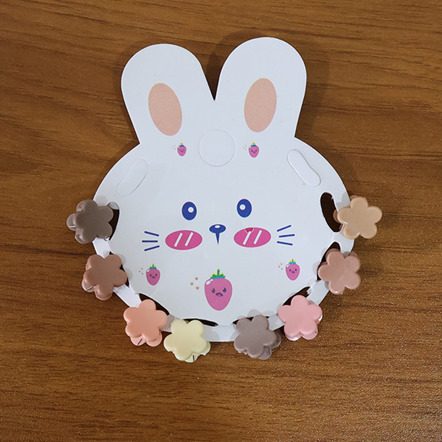 This adorable flower-shaped mini hair claw clip set is designed specially for kids, offering a fun, colorful, and easy way to style hair for daily use or special occasions. Each clip features a smooth, rounded design that gently holds hair without pulling, ensuring a comfortable and secure grip throughout the day. The set comes arranged on a cute bunny-themed display card, making it an attractive gifting option for young girls. These mini clips are perfect for creating playful hairstyles, securing small sections, decorating braids, or adding charming accents to ponytails. Lightweight, durable, and safe for delicate hair, this set provides a delightful combination of utility and cuteness, making it a must-have accessory for kids.
