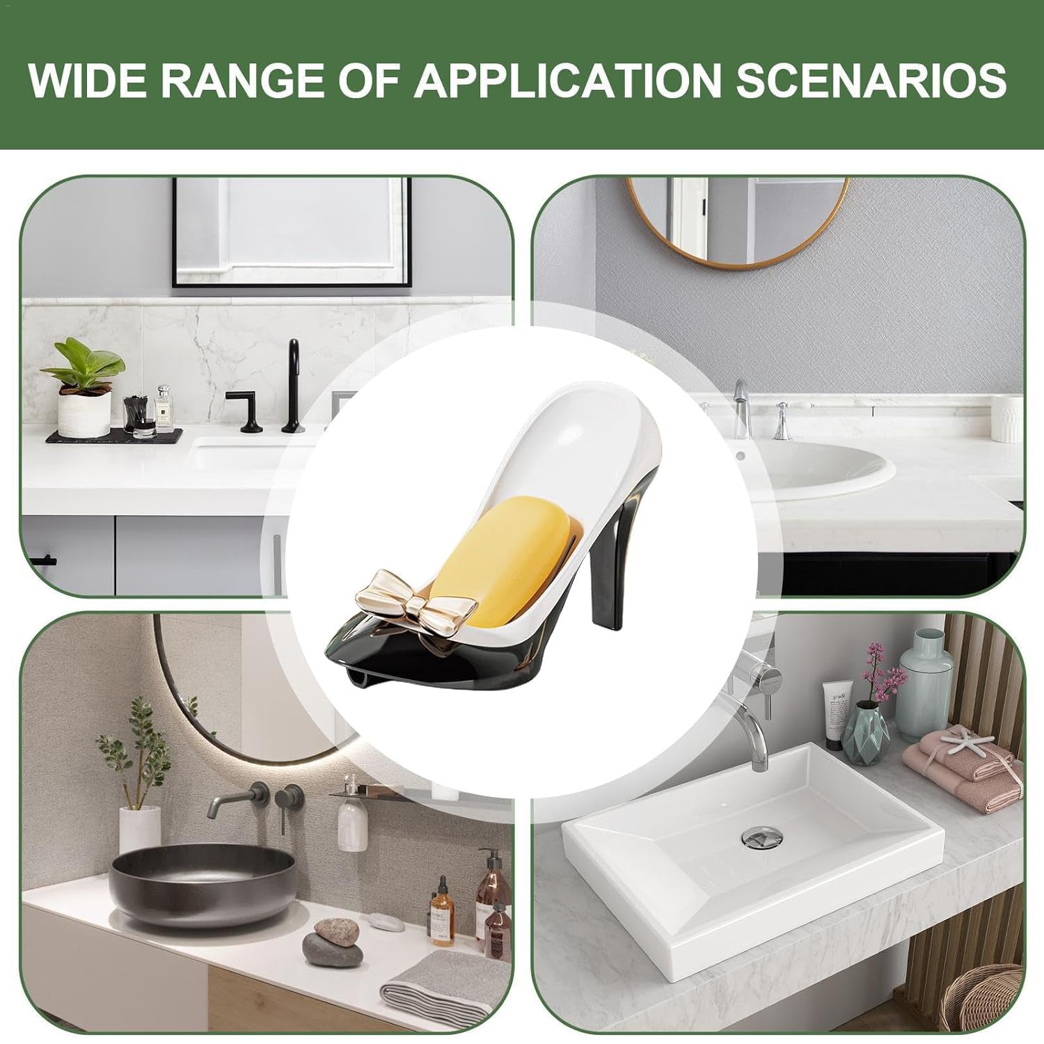 - Enhance Your Bathroom Ambiance: Adding a touch of light luxury style, this suction cup soap dish is not just practical, but also a work of art. Featuring an exquisite bow decoration, it comes in black and white colour scheme and is crafted with great materials.