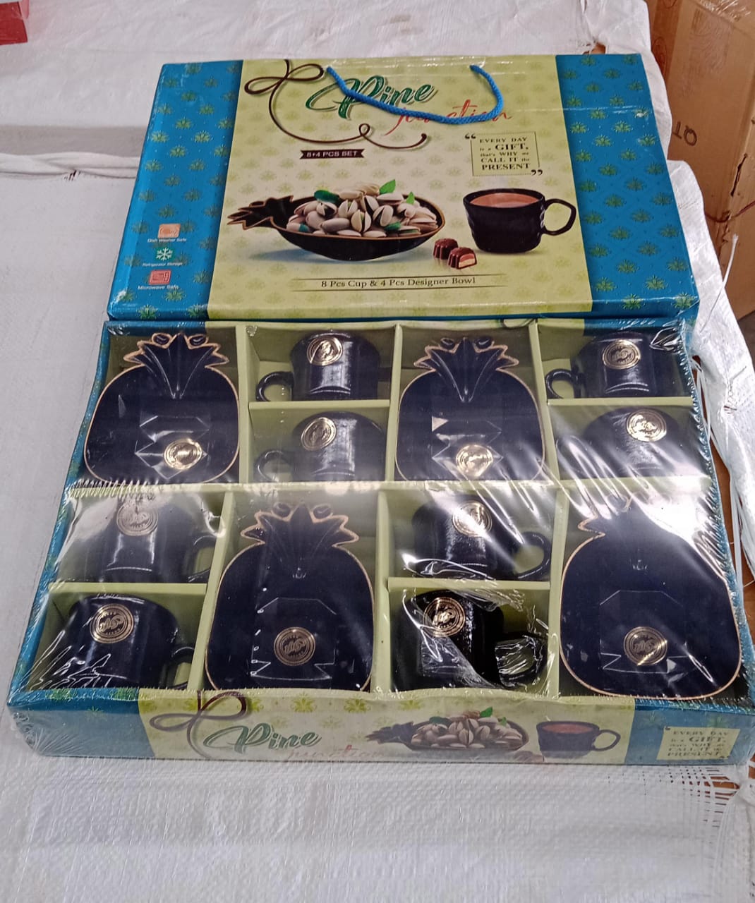 Pine Junction Ceramic Tea / cups / Mug Set Pineapple Shape Serving Bowl (12 Pcs set)