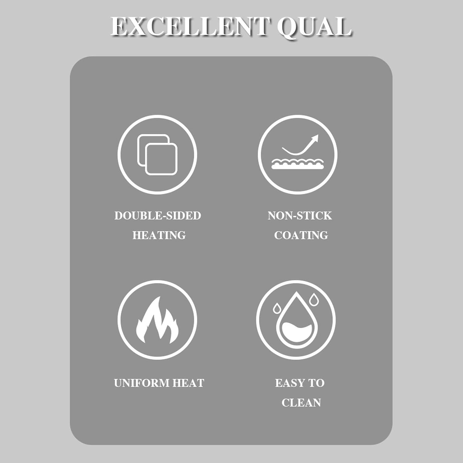 - Fast and Simple Cooking: Just plug in the power supply, turn it on, and then heat it for a few minutes. Double non-stick panel will provide even cooking.