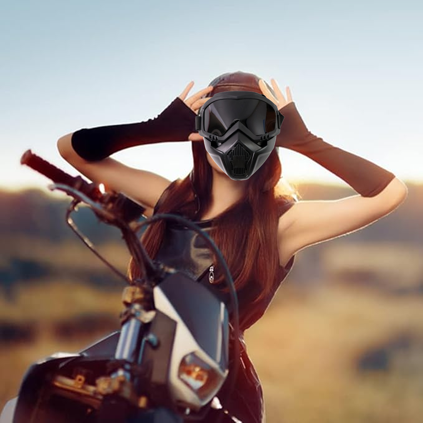 Outdoor Motorcycle Goggles Off-Road Helmet Goggles Windproof Glasses Goggles Mask Goggles Ski Goggles Café Racer Goggles, UV Protection Goggle Mask Anti Scratch Mouth Filter for Cycling Bike Off Road Racing Ride Unisex (1 Pc)