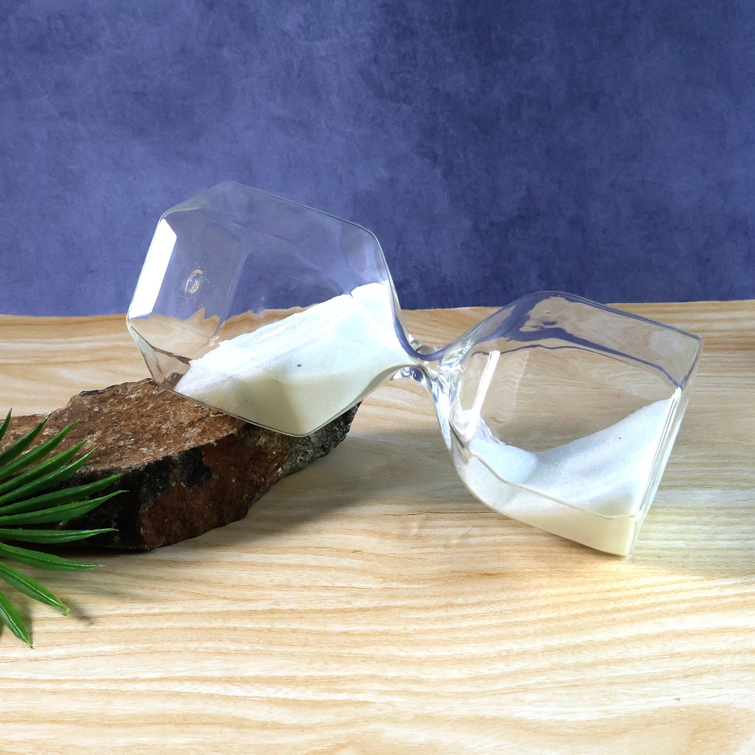 Add calm focus to any space with this clear glass hourglass sand timer. The crystal-clear body and fine white sand create a smooth, soothing flow that’s perfect for pacing short tasks, work sprints, and study breaks while doubling as an elegant décor piece for desks, shelves, and reception counters. Its geometric silhouette looks modern from every angle, and the balanced neck ensures a steady stream of sand for a reliable visual countdown. Packaged securely in a protective brown box, it’s a thoughtful gift and a timeless accent for homes and offices alike.