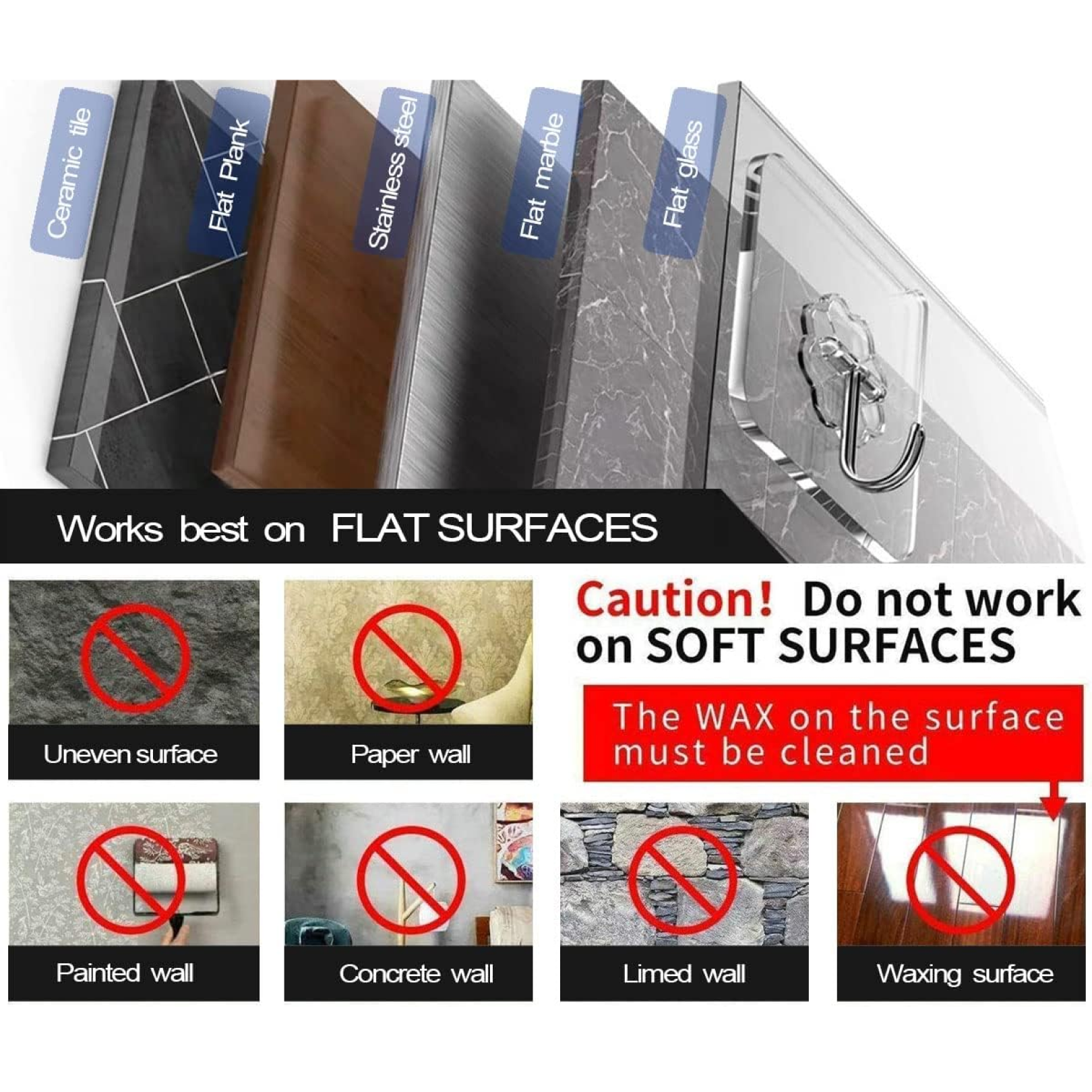 Material: Strong PVC adhesive base + stainless steel hook